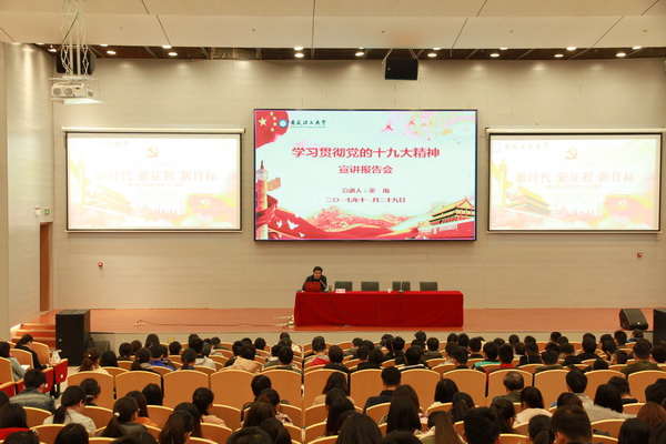 1月29日上午,学校在舜耕会堂举行学习宣传贯彻党的十九大精神宣讲报告会。校党委常委、副校长、校宣讲团副团长董雨作宣讲报告。