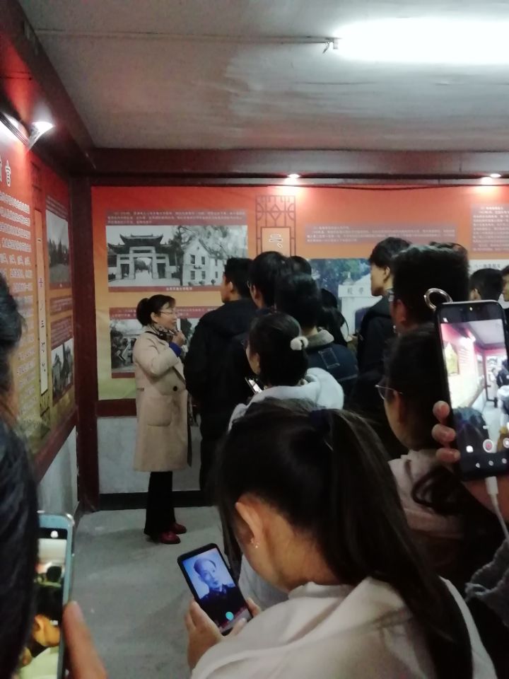 师生一行怀着无比崇敬的心情,先后参观了廖家湾革命事迹、民主革命先驱廖梓英、传奇将军廖运周、淮上军始末、抗日烽火中的廖氏子弟等六个展厅,认真聆听了廖家湾革命先烈的事迹介绍。全面深入地认识和了解了江淮儿女特别是廖氏家族在辛亥革命、南昌起义、抗日战争、解放战争等重大历史事件和重要历史时期中为国家独立、民族解放和人民幸福而浴血奋战的光辉历史。“辛亥九兄弟,结党反清廷。民国五将军,举义向光明。黄埔三十七,报国从军伍。英烈四十一,为国捐身躯。”一幅幅图片、一段段精彩的讲解,将师生们带到了廖家湾革命先烈为了国家独立、民族解放、人民幸福而浴血奋战的历史现场,大家无不为革命先烈的爱国、奉献、牺牲精神所震撼。