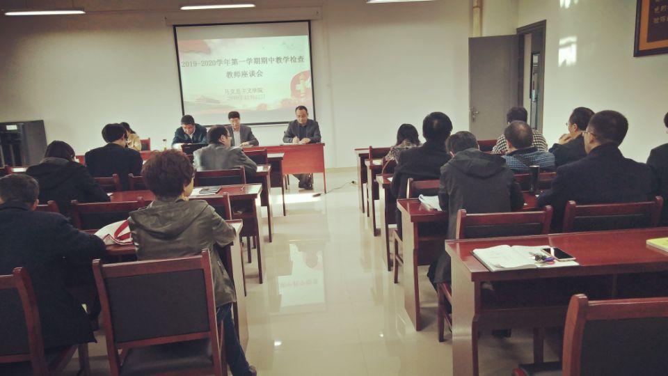 11月22日下午,马克思主义学院在崇智楼411室召开2019-2020学年第一学期期中教学检查教师座谈会。副校长董雨出席会议并讲话,人事处、马克思主义学院教师等30余人参加了会议。会议由马克思主义学院院长孙功主持。