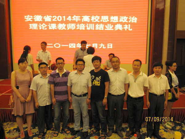 7月6日至9日,思想政治理论教学部教师康桂英、李长虹、王宏兴、朱广亮、高旭、张家宇、汤传平、王琦一行八人,参加了在芜湖市中央城大酒店举办的全省高校思想政治理论课骨干教师培训班。