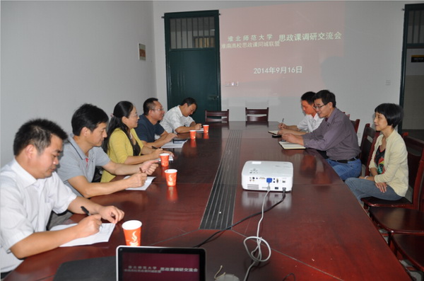 9月16日上午,淮北师范大学思政中心副主任谢其梅、思想政治教学部主任郝文清来我部调研交流思政理论课建设情况。我部领导徐其清、孙功以及各教研室主任、支部书记等10人参加了座谈会。