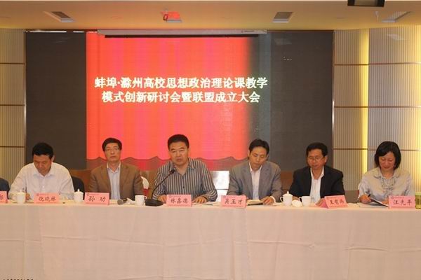 教育厅思政处处长林鑫德在讲话中指出,成立蚌埠·滁州高校思政课建设联盟是全省思政课建设的又一创举,具有联盟范围新、联盟成员新、建设内容新、成立时节新等“四新”特点。联盟的成立是适应高校思政课建设新常态的需要、是迎接思政课新挑战的需要、是落实教育部关于全面提高高等教育质量新要求的需要、是整合思政课建设新资源的需要,具有重要意义。林鑫德还阐述了联盟的 “四项任务”,即联盟建设规范化、建设内容具体化、教学资源共享化、管理机制协同化;明确了“一个目标”,即“联有所获,建有效果,适度实在,上下认可”。