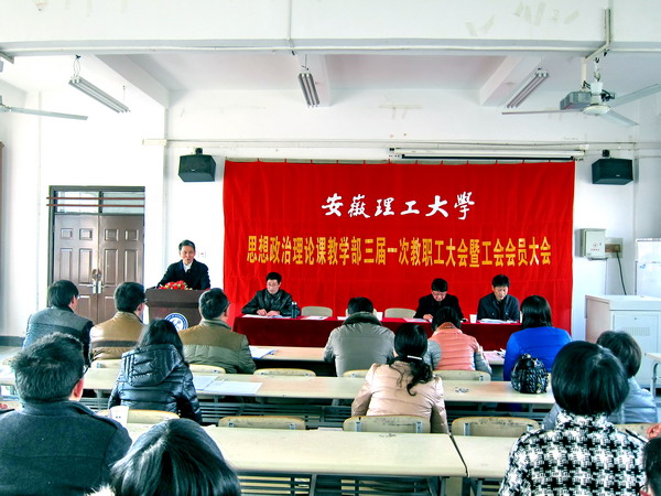王洪代表学校党委、行政对思政部三届一次教职工大会暨工会会员大会的召开表示热烈祝贺,对为思政部的建设和发展做出贡献的教职工和工会会员表示诚挚问候。王洪在讲话中充分肯定了思政部在教学改革、科学研究、师资队伍建设等方面所取得的显著成绩,同时对思政部2015年工作提出指导性意见。他指出,思政部工作的特点是面向全校学生,重点是抓好教学工作,特别要注意做到“三个结合”:一是要与当前国内外形势相结合,提高教学的时效性;二是要与学生的学习、生活实际相结合,把握学生的思想动态,提高教学的针对性;三是要与中国的传统文化相结合,提高教学的感染力和影响力。思政课教师在搞好教学工作的同时,还要注重科研工作。科研是思政课教师做好教学工作和自身发展的不竭动力。科研要有地域特色,找准发力点。只要我们的教师能坐下冷板凳,一定能够有所作为。最后,王洪还就思政部2015年工作思路提出建议,希望思政部全体教职工共同努力,推动各项工作再上新台阶。
