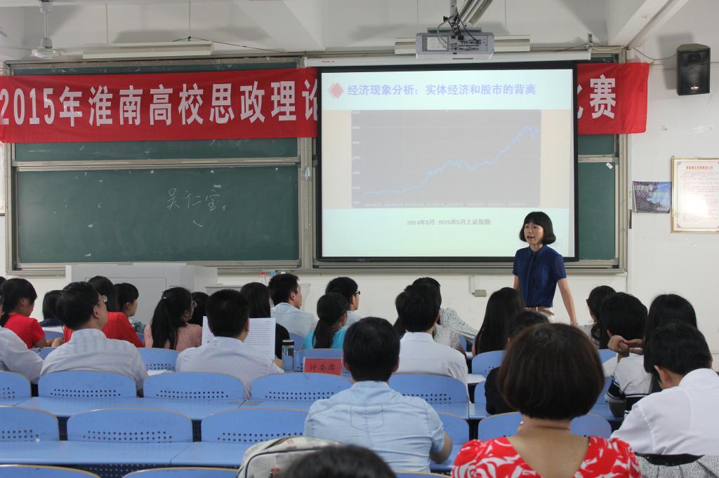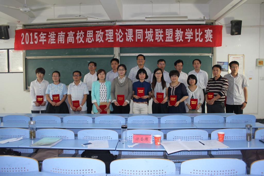 5月29日下午,2015年淮南高校思政理论课同城联盟教学比赛在淮南师范学院泉教A310教室举行。安徽省思政理论课教学指导委员会委员合肥工业大学马克思主义学院陈殿林教授、檀江林教授,安徽师范大学政治学院张正光教授、安徽科技学院思政部主任王有炜教授、阜阳师范学院思政部主任闫成俭教授、芜湖职业技术学院思政部主任储水江教授应邀担任比赛评委。淮南同城六校思政部负责人和部分教师参加活动。思政部选派的参赛教师李洁、代先祥分获一、二等奖。