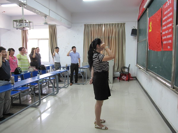 7月1日下午,在雄壮的国歌声中,由思政部等北区四院(部)与陈岗社区联合举办的、庆祝中国共产党建党94周年报告会在理学院报告厅拉开帷幕。淮南师范学院马克思主义学院院长、党总支书记吴玉才教授应邀为全体党员作报告。我部11名党员教师与各单位近两百余名党员一起参加了报告会。