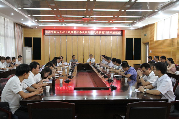 9月2日上午,中国人民抗日战争胜利暨世界反法西斯战争胜利70周年师生座谈会在校本部图北会议室召开。校党委书记颜事龙、副书记王洪出席座谈会。各院(部)、机关党委师生代表近50人参加了座谈会。我部孙功、陈应仙、康桂英、王琦、代先祥等5位老师参加座谈会并发言。