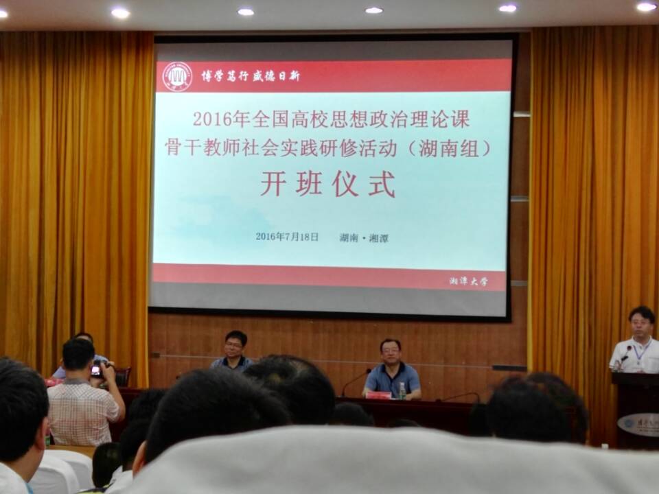为贯彻落实中办、国办印发的《关于进一步加强和改进新形势下高校宣传思想工作的意见》精神,落实中宣部、教育部印发的《普通高校思想政治理论课建设体系创新计划》精神,切实加强高校思想政治理论课教师队伍建设,帮助高校思政课教师了解国情,开阔视野,提高认识,促进理论与实践的结合,进一步坚定中国特色社会主义道路自信、理论自信、制度自信,坚定文化自信,中宣部、教育部决定于今年7-8月组织高校思政课骨干教师分赴河北、上海、江苏、浙江、福建、江西、山东、湖南、广东、贵州等地进行实践研修。我院教师康桂英于7月17日至23日赴湖南湘潭参加了实践研修。