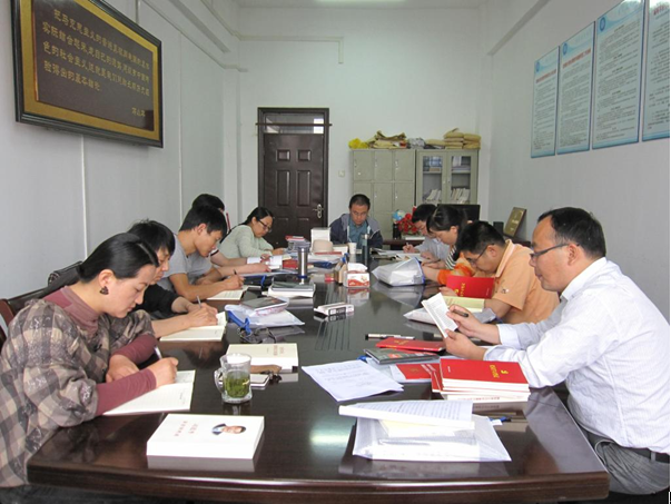 马克思主义中国化教研室党支部隶属安徽理工大学马克思主义学院党总支,现有党员11人,其中教授1人,副教授4人。如果可以用关键词概括“中国化”党支部的气质,那就是“有色”与“有形”:她由讲授传播马克思主义理论的党员教师组成,有标示性的颜色;经过党员教师的努力勾勒,有“传灯使者”的丰满形象。