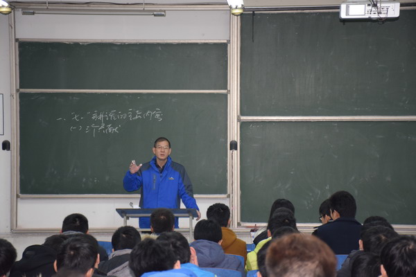 11月23日晚,校长王其东以“学习习近平‘七一’重要讲话精神”为主题,在北区1201教室为机械工程学院2015级100多名本科生上了一堂精彩的《形势与政策》课。
