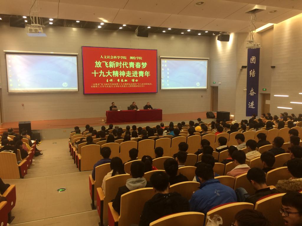 12月1日下午,应人文学院、测绘学院邀请,安徽省“放飞新时代青春梦 十九大精神走进青年”百人宣讲团成员、我院马克思主义原理教研室主任李长虹老师在舜耕会堂作学习贯彻党的十九大精神专题报告。报告会由人文学院党总支书记吴云平主持。人文学院、测绘学院党员及低年级入党积极分子参加了报告会。