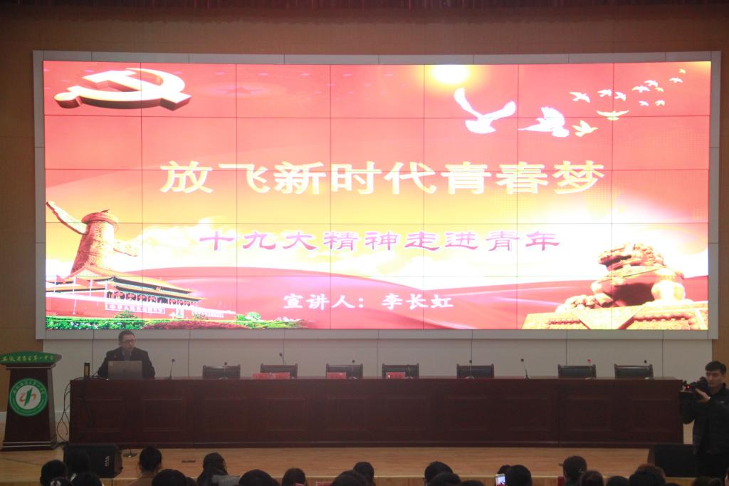 会上,李长虹老师分别从党的十九大主题和主要成果、习近平新时代中国特色社会主义思想、过去5年的历史性成就和历史性变革、中国特色社会主义进入新时代等方面,深入浅出地阐述了党的十九大提出的一系列新思想、新部署、新要求。李长虹老师要求广大高中生要把握好高中阶段这个人生观、价值观、世界观形成的关键时期,不忘初心,牢记使命,做有理想、有本领、有担当的青年,在实现中国梦的生动实践中放飞青春梦想,在为人民利益的不懈奋斗中书写人生华章。