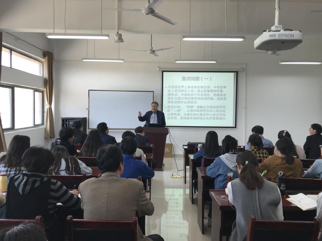 柏桦教授以《中国古代法律制度与管理智慧》为题,以中国古代政治文化为背景,从历代司法行政体制及运行机制的特点、诉讼形式的不同与诉讼制度的关系、古代的拘捕制度与现代拘留制度的区别、证据取得与勘验制度的必然联系、审判层级与审讯方式的关系、古代监狱制度与现代监狱制度的不同、诉讼师与律师的区别等七个方面进行了具体阐述,为马克思主义学院和外国语学院的师生带来了一场栩栩如生的报告。