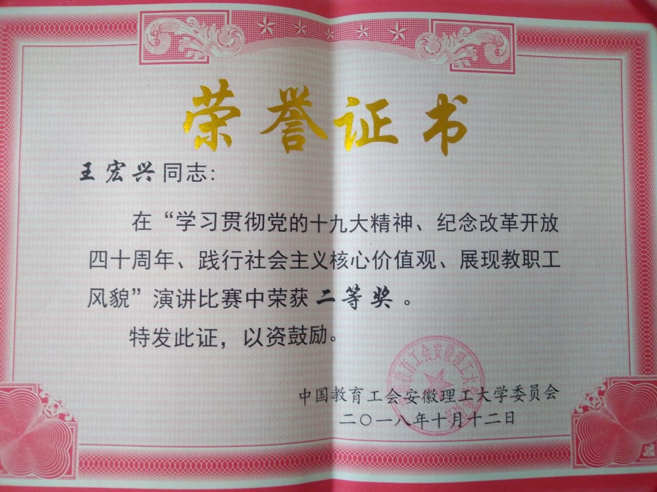 学院选派王宏兴老师参加了本次活动,他演讲的题目是《改革成就梦想 奋斗铸造辉煌》。通过声情并茂地讲述身边的故事,生动地展现出改革开放以来我国发展取得的巨大成就和人民生活发生的巨大变化,同时也抒发了对教育事业的忠诚和热爱,引发了现场观众的强烈共鸣。经过激烈角逐,王宏兴老师以排名第二的良好赛绩荣获二等奖。