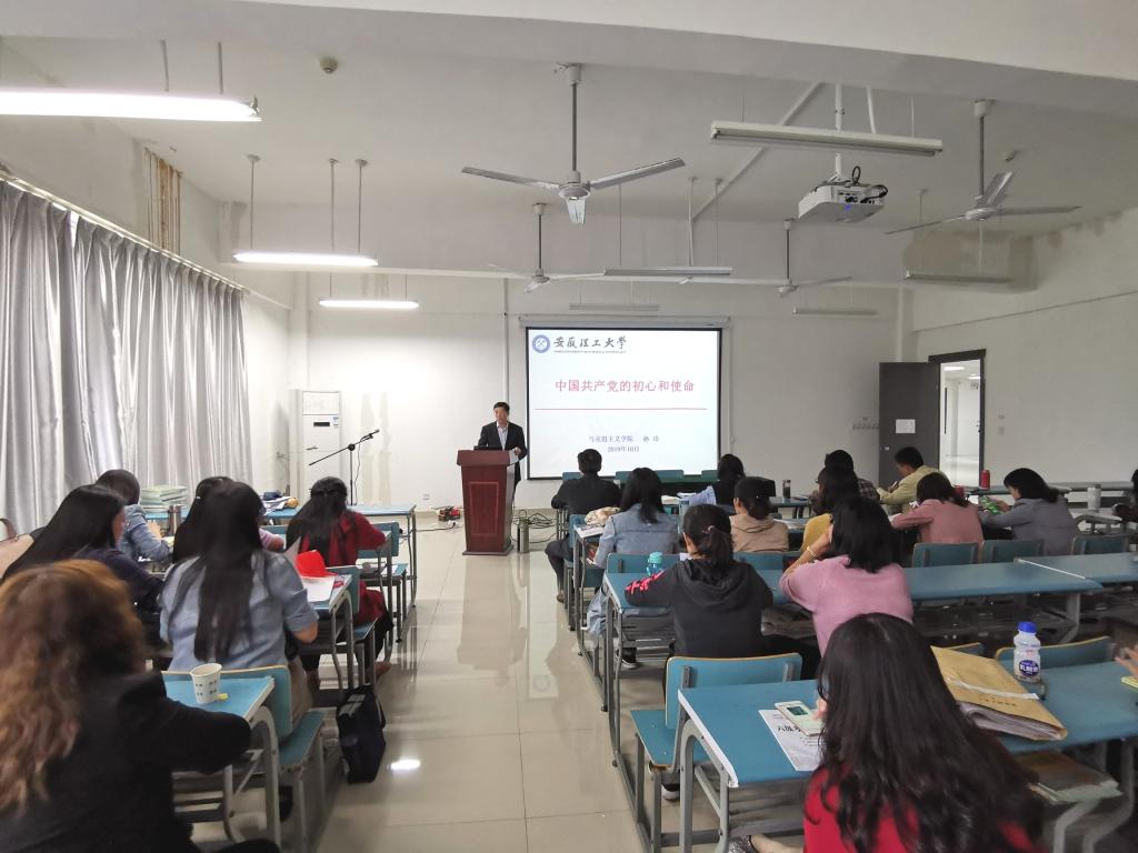 10月11日下午,马克思主义学院党总支书记孙功教授应邀在崇智楼B229室为外国语学院党委作“不忘初心、牢记使命”主题教育专题报告。