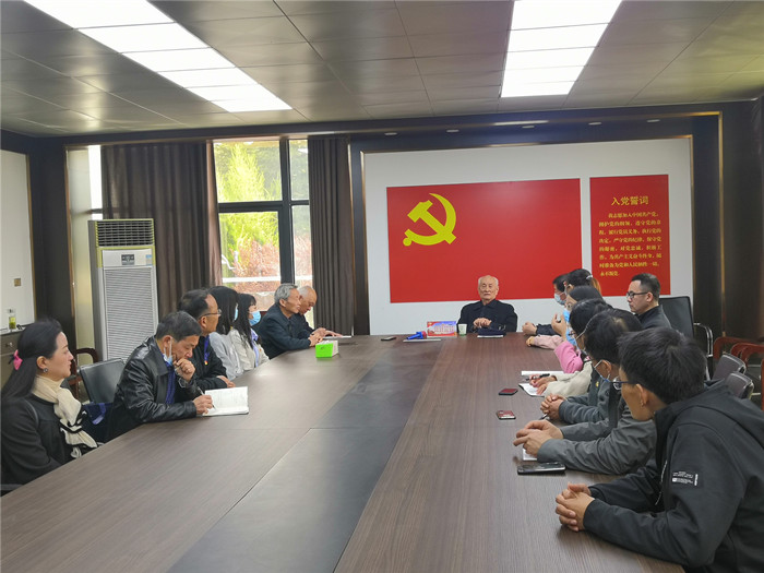 在新四军纪念馆,淮南市原市长、淮南新四军研究会名誉会长宋长汉同志兴致勃勃地给党员们讲述了淮上革命风云。宋老从安徽最早的农村党组织小甸集特支说起,回顾了中国共产党成立初期返淮的党员在寿县、凤台地区领导人民开展革命的艰难场景与革命激情,展现了江淮儿女毁家纾难慷慨赴义的英雄气概,重申了新时代淮南发扬革命精神传承红色基因的必要性紧迫性。讲课过程中穿插了一些安徽大地、沿淮两岸人民在抗日战争、解放战争时期的英雄事迹和人物,如“曹氏三门七烈士”,张治中将军三赴延安等,感人至深、直击心灵。宋老还讲述了建设新四军纪念林的初衷和意义,认为经过十几年的发展,新四军纪念林在文化、生态、经济方面作出了巨大贡献,已然成为淮南地区红色教育基地、绿色旅游基地、金色发展基地。