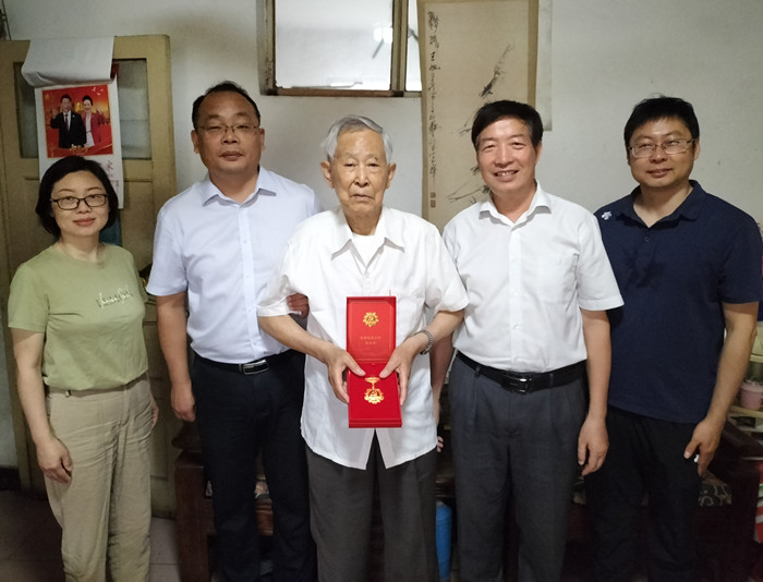 在本部家属区,党总支走访慰问了89岁的老党员王旭同志,为他送去“光荣在党50年”纪念章和慰问金,感谢他为党的事业和学校发展作出的积极贡献,并致以节日问候和美好祝福。王旭老师1956年加入中国共产党,1993年光荣退休。手捧纪念章,王旭老师感动得热泪盈眶。虽已失聪,王旭老师仍然保持良好的生活习惯,坚持每天阅读书籍、观看新闻等。