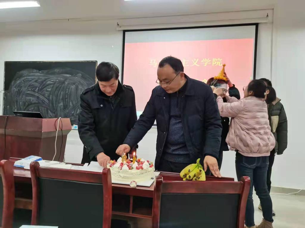 12月31日下午,马克思主义学院在崇智楼A411教室为2021年下半年过生日的40余位教职工举行集体生日会。