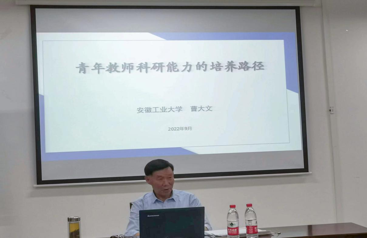 为提升青年教师的科研能力和水平,9月23日下午,马克思主义学院、安徽省高校思想政治工作中青年骨干队伍建设项目(sztsjh-2022-7-1)邀请安徽工业大学曹大文研究员在411会议室举办了一场科研前沿讲座。讲座由马克思主义学院院长朱广亮主持,全体教师参会。