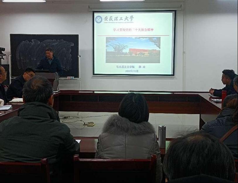 为深入学习领会党的二十大精神,扎实推进学习宣传贯彻工作,引导学院教职工把思想和行动统一到党的二十大精神上来,12月2日下午,马克思主义学院在崇智楼411会议室举办党的二十大精神学习专题研讨会。马克思主义学院党委书记孙功作主题报告,学院全体教职工参加了本次研讨会。