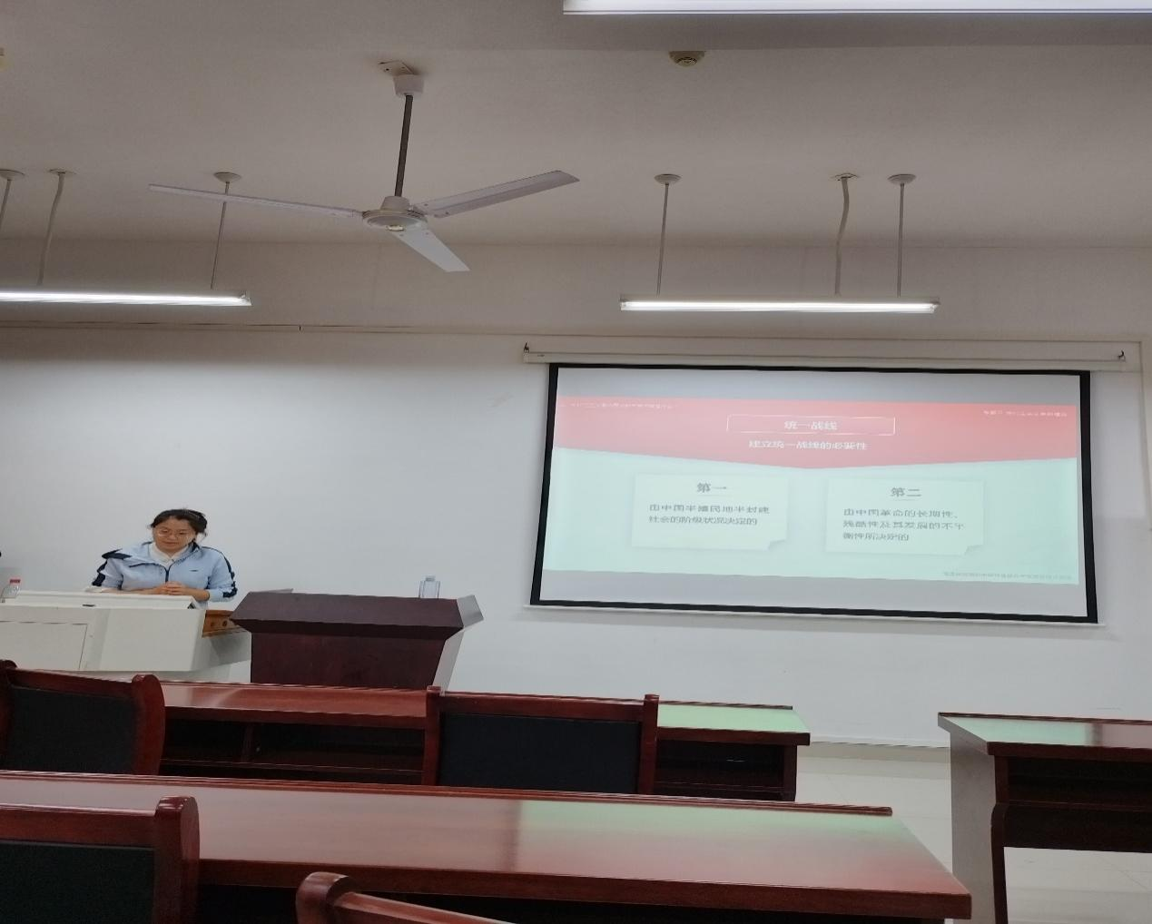 本次活动由张锦老师主讲,教研室其他老师评讲。张老师以教材第二章“新民主主义革命理论的基本经验”为重点,采用说课的形式,分析了统一战线、武装斗争、党的建设这三大法宝相互联系、辩证统一的关系,揭示了中国革命发展的客观规律。此次说课内容丰富,案例生动,逻辑严密,学理性强。