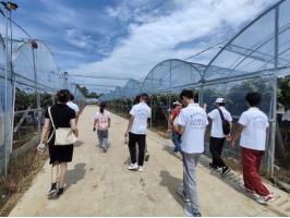 为深入了解小岗村以大农业观为引领,不断探索现代农业发展新路径,用新质生产力持续推动产业升级转型,7月8日下午,团队赴小岗村产业基地开展调研活动。团队成员先是参观了匠心葡萄园,通过老板讲解,成员们了解到该基地利用温度自动监控系统进行高科技种植,根据天气实时变化,协同降温系统,喷洒雾状水,对葡萄进行降温处理,保证产品质量。同时,地面上运用滴灌智能灌溉,最大化保证葡萄生长需求,并根据时间节点进行有机施肥。随后,团队来到小岗村程夕兵农事服务中心,感受电气化智慧育秧。据介绍,育秧中心在建设过程中,一是敢于创造提升含“绿”量;二是敢于创新提升含“智”量;三是敢于创效提升含“金”量。智能化育秧工厂的建设给现代农业插上科技的翅膀,也为粮食丰产丰收、农民增收致富奠定了坚实的基础。最后,团队参观了北大荒集团七星小岗村示范区,在这里,成员们不仅在观景台上领略到栩栩如生的稻田画,还通过王晨旭同学的讲解,更加体会到“科技赋能、助力乡村振兴”的政策智慧与践行伟力。