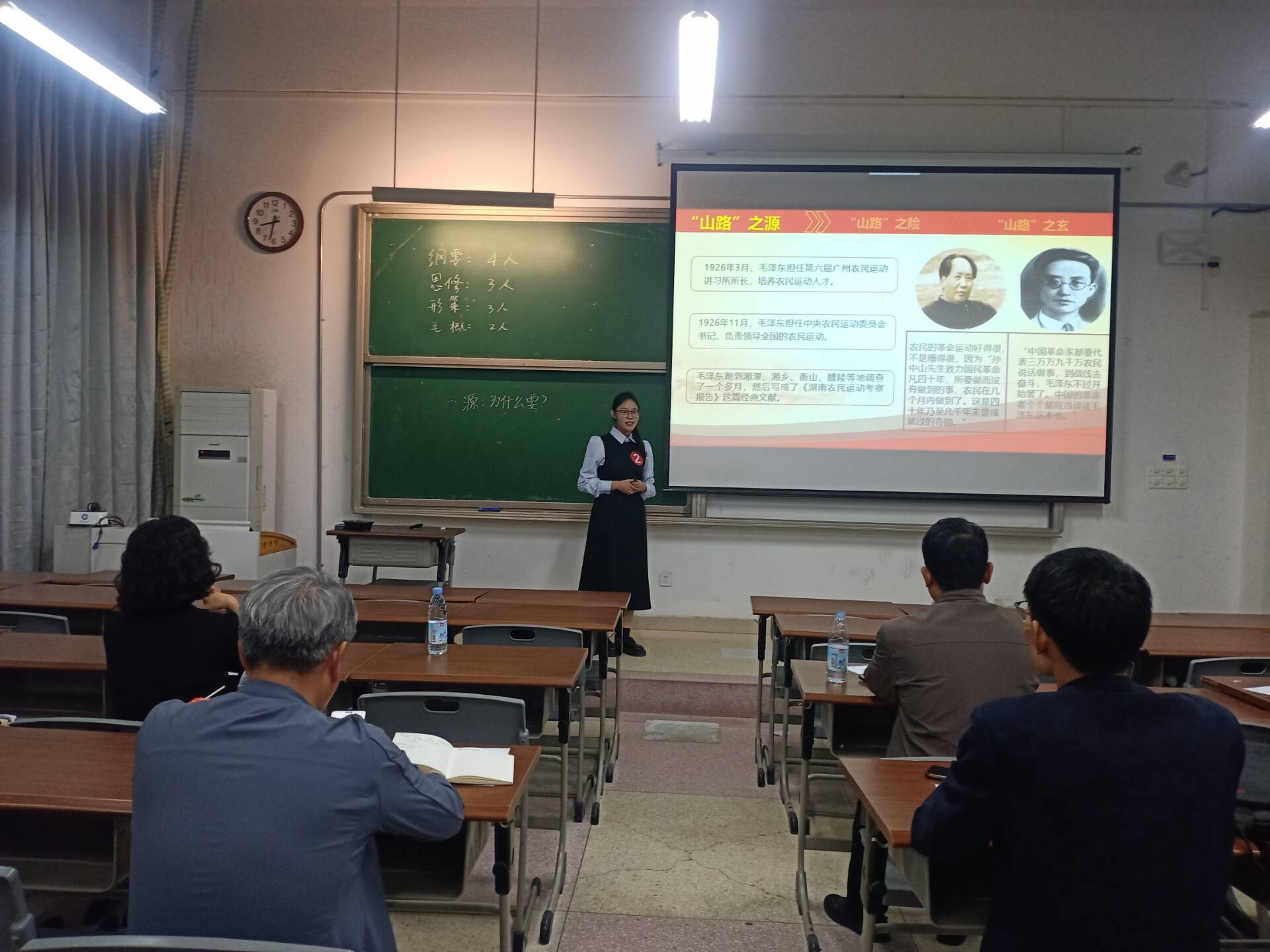 为深入学习贯彻习近平总书记对学校思政课建设重要指示精神,坚持不懈用习近平新时代中国特色社会主义思想铸魂育人,10月9日下午,我校 “大学生讲思政课”比赛在明理北103、105教室举行,学校相关职能部门负责人、校教学督导组成员、马克思主义学院骨干教师应邀担任评委。