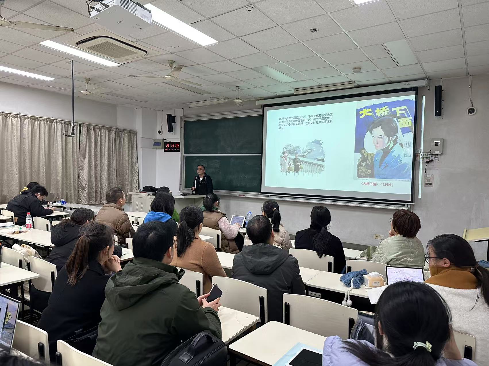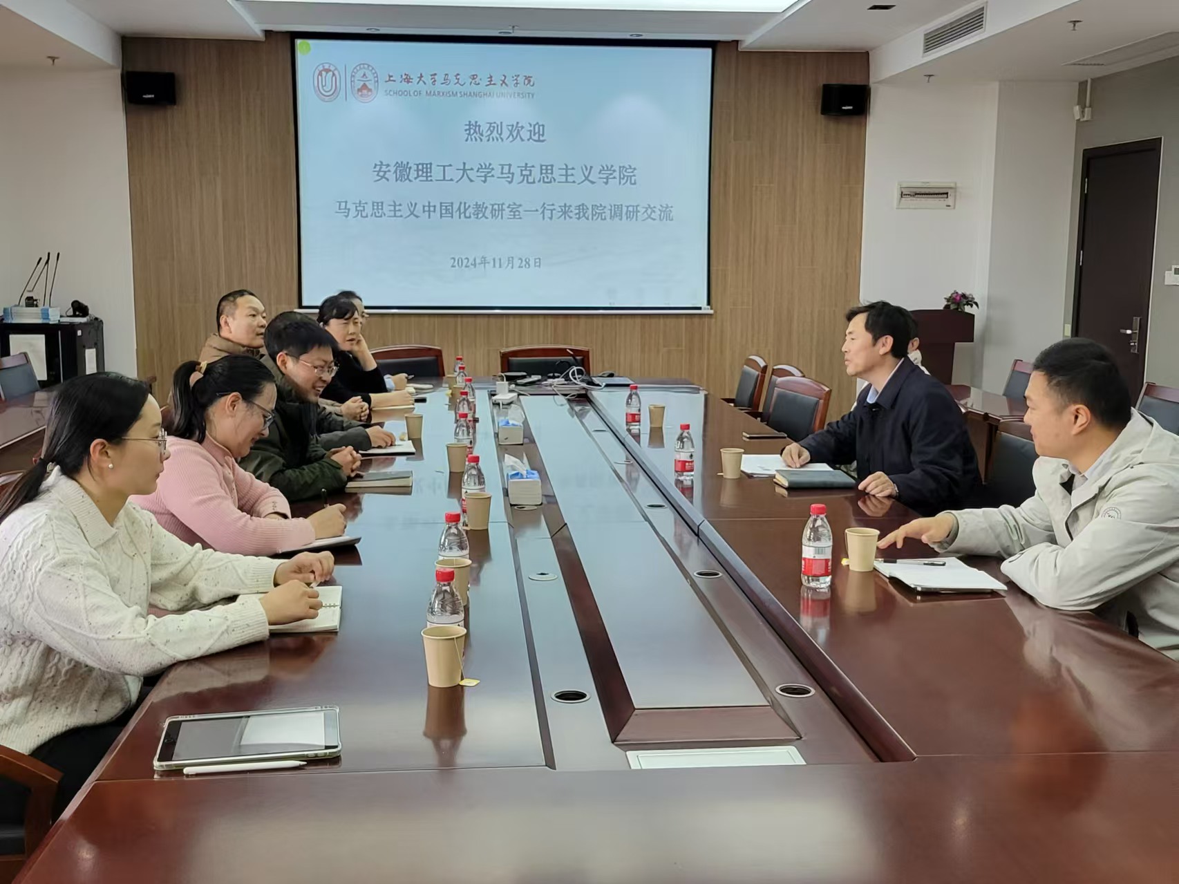 11月28日,赴上海大学马克思主义学院调研交流。《毛泽东思想和中国特色社会主义理论体系概论》教研部主任徐海峰教授介绍了《概论》课程教研部师资队伍建设、课程教学工作安排、实践教学、课程考核及科研工作等基本情况。上海大学马院欧阳光明教授围绕思政课教学、科研及青年教师培养与教研室老师进行了亲切的交流。教研室老师一行又走访了上海大学马院顾晓英名师工作室。在顾晓英教授的带领下,教研室教师深入上海大学美术学院“美丽中国”课堂、上海大学电影学院“光影中国”课堂听课,深刻感悟只有依托学科充分挖掘专业课程的“思政元素”,才能推动“思政课程”向“课程思政”的转变。