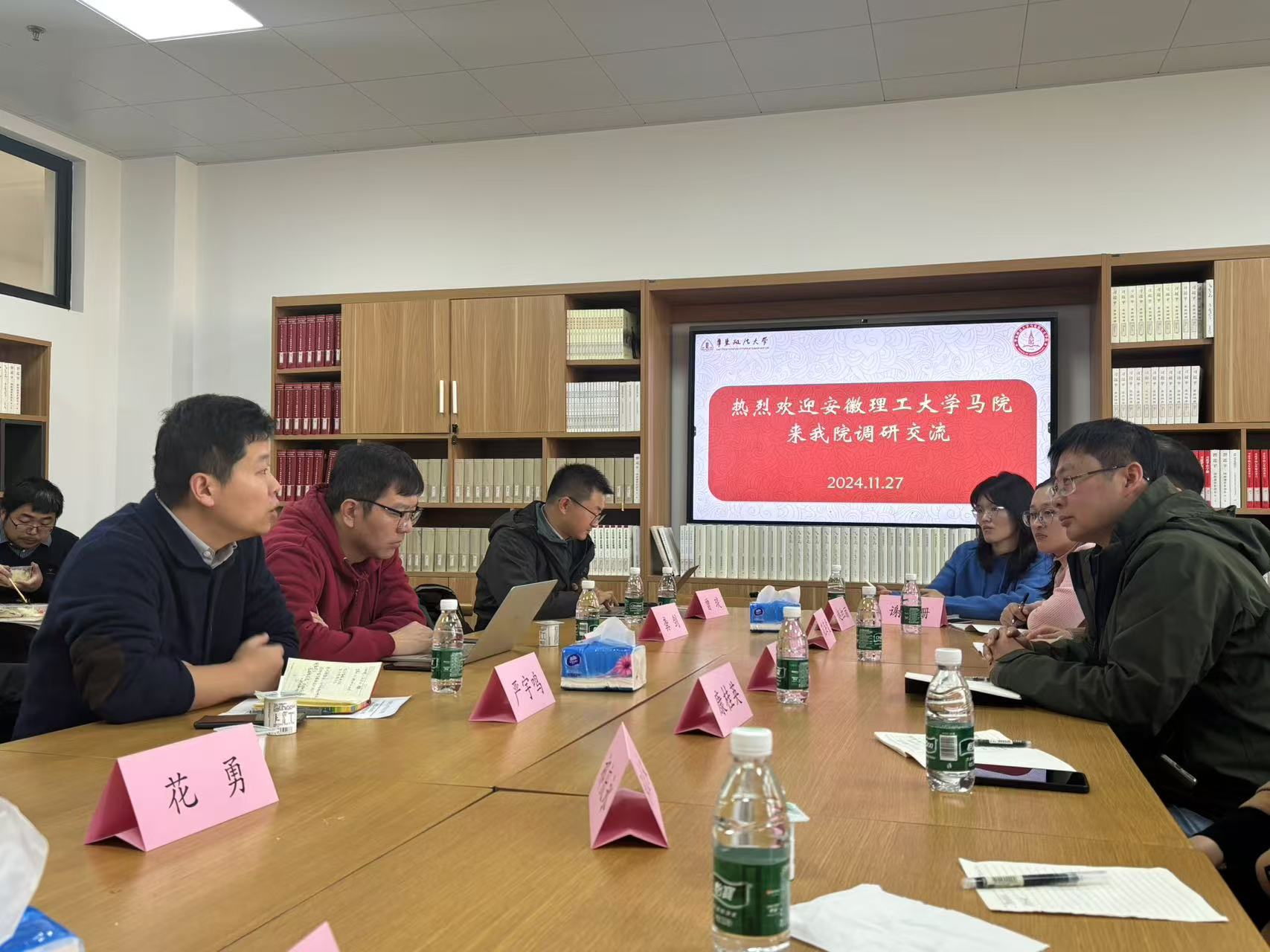 11月27日,赴华东政法大学马克思主义学院调研交流。华东政法大学马克思主义学院副院长严宇鸣教授介绍了华东政法大学思政课教学的基本特征、马克思主义学院师资队伍建设及教学工作的基本情况,分享了“以学促教、以赛促教”理念,强调发挥集体备课这一特色机制的优势,大力支持青年教师参与各类教学竞赛,鼓励青年教师将科研、教学、竞赛有机融合,不断提升教师的科研能力和教学水平。王建新博士结合自身经验就“实践教学”的类型进行了介绍,强调要在专业实践中挖掘思政元素,借助互联网平台展现学生优秀实践成果,以充分调动学生的积极性和主动性。马克思主义中国化研究专业硕士点负责人花勇副教授表示专题教学作为华东政法大学马院的传统教学方式,不仅可以充分发挥教师的个人优势,而且在整合汇聚优势资源、发挥学科集体合力上有着不可忽视的作用,他强调做好教学工作需要“扬长避短”“取长补短”。