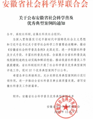 为深入贯彻落实习近平新时代中国特色社会主义思想和习近平总书记关于哲学社会科学工作的重要论述精神,积极响应时代号召,推动《安徽省社会科学普及条例》的深入实施与广泛影响,安徽省社科联精心策划并组织开展了一场旨在进一步创新社科普及方式手段、丰富社科普及内容的社会科学普及优秀典型案例评选活动。