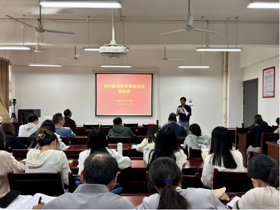 4月25日,马克思主义学院本科教育教学审核评估启动会在崇智楼A411会议室召开,就2025年下半年本科教育教学审核评估工作进行部署。学院副院长郭金明主持会议,全体教师参加会议。