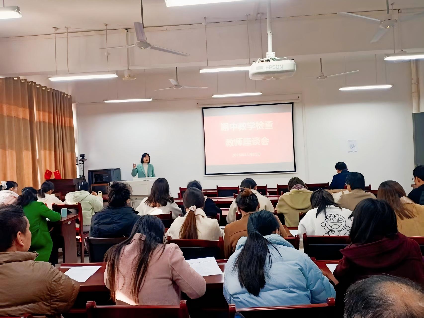 11月21日下午,马克思主义学院于崇智楼411室举办了2025-2026学年第一学期期中教学检查教师座谈会暨示范教学观摩活动。本次活动由学院党委书记主持,全体教师参加。