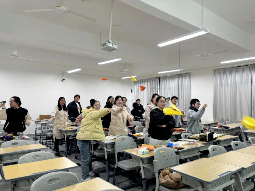 “心愿飞机场”作为情感表达环节,鼓励同学们在特制彩纸上写下自己的烦恼或愿望,如“愿我能勇敢表达自己”“期待顺利毕业”等,将彩纸叠成纸飞机形状,投放于固定点。该环节为同学们提供了安全的情感出口,帮助释放压力、增强希望感,营造了温暖、包容的心理支持环境。
