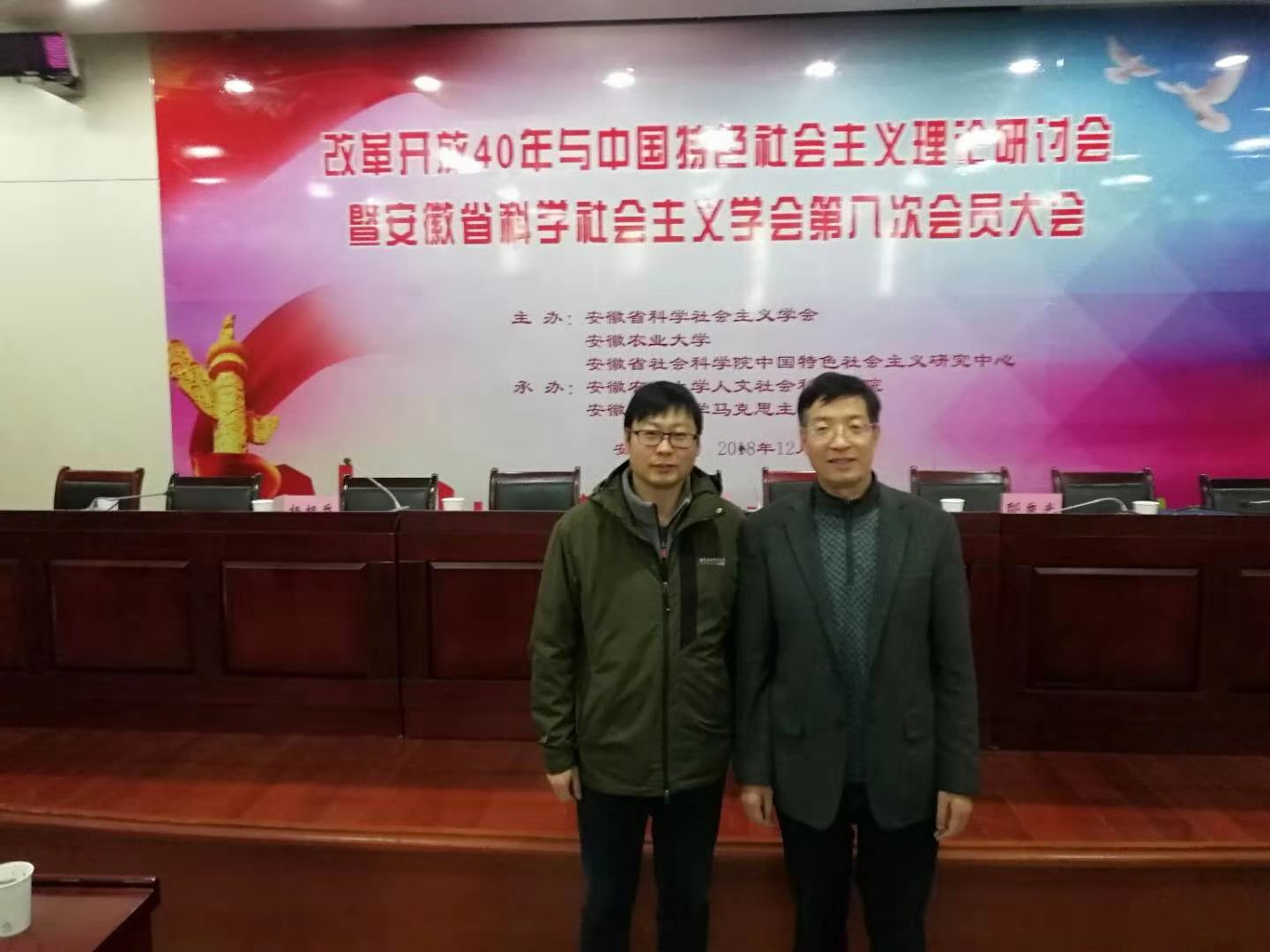 12月1日,安徽农业大学和安徽省社会科学院中国特色社会主义研究中心联合举办的“改革开放40年与中国特色社会主义理论研讨会暨省科社学会第八次会员大会”在安徽农业大学图书馆第二报告厅举行。我院孙功院长、岳柏冰老师参加了会议。