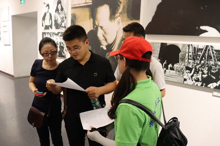 团队成员在西柏坡纪念馆为“铁流千里”考察队队员进行现场解说