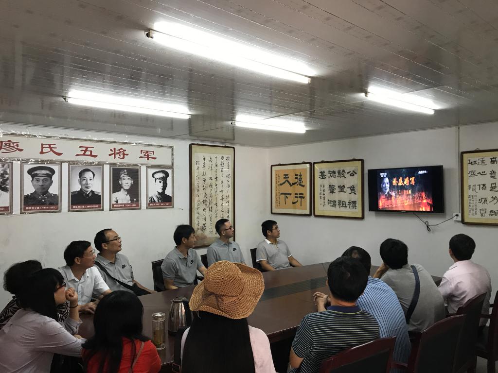 “辛亥九兄弟,结党反清廷。民国五将军,举义向光明。黄埔三十七,报国从军伍。英烈四十一,为国捐身躯。”廖家湾村有着悠久的爱国主义传统,辛亥革命以来,先后有四十余人为国捐躯,在南昌起义、抗日战争、淮海战役、和平解放安徽等重大历史事件中,廖氏族人均发挥了巨大的进步和推动作用。大家怀着崇敬的心情,认真听取革命先烈的事迹介绍,观看图文资料和音像视频,凭吊革命纪念碑。一张张图片、一件件文物、一个个真实的故事, 生动形象地再现了廖家湾革命先烈为了国家独立、民族解放、人民幸福而浴血奋战的光辉历程,使大家的心灵深受震撼和洗礼。