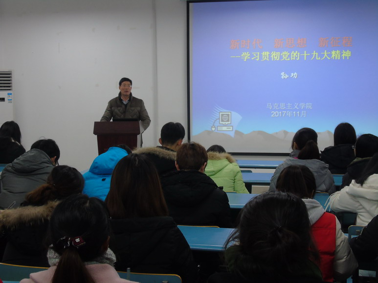 12月15日下午,应外国语学院邀请,学校党的十九大精神宣讲团成员、马克思主义学院副院长孙功教授在崇智楼B235教室作了题为《新时代、新思想、新征程——学习贯彻党的十九大精神》的报告会。外国语学院全体党员和部分入党积极分子听取了报告。