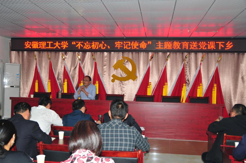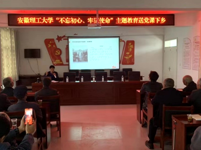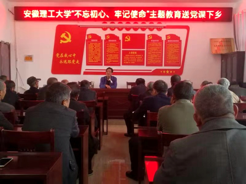 为发挥高校的资源优势,10月9日至10日,学校党委组织“不忘初心、牢记使命”主题教育宣讲团深入淮南毛集实验区孙台村、临泉县王香铺村、杨小村等学校定点扶贫帮扶村,开展主题教育送党课下乡活动,马克思主义学院教师党员利用自己的专业优势积极参与宣讲。