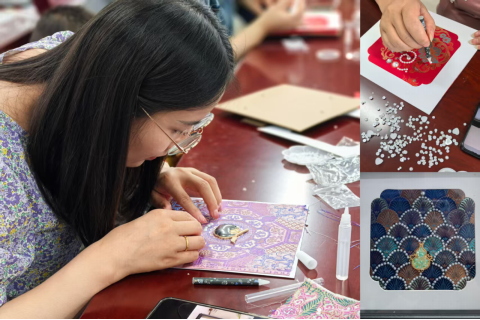 在端午节来临之际,院分工会于5月30日下午3点在学院411教室精心组织开展了“锦绣端午·非遗新韵”——欢庆端午系列活动。第一个活动是宋锦珍珠画制作体验活动,工会工作人员按组为参与者发放了材料包,还提供了多种端午主题设计图供大家选择。大家齐心协力,充分发挥创意,将宋锦的华美与珍珠的温润巧妙融合,精心制作出一幅幅独具特色的宋锦珍珠画,现场气氛热烈而温馨。